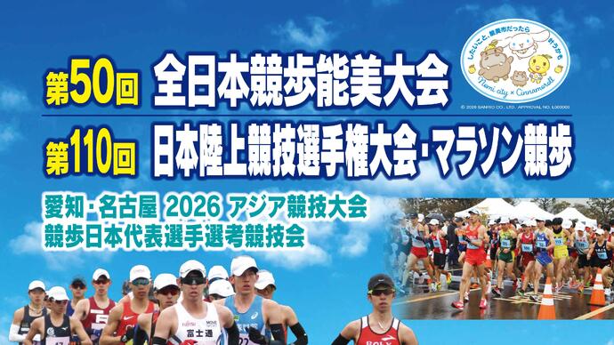 第50回全日本競歩能美大会/第110回日本陸上競技選手権大会・マラソン競歩の欠場届と前日イベント情報(能美市)を掲載しました
