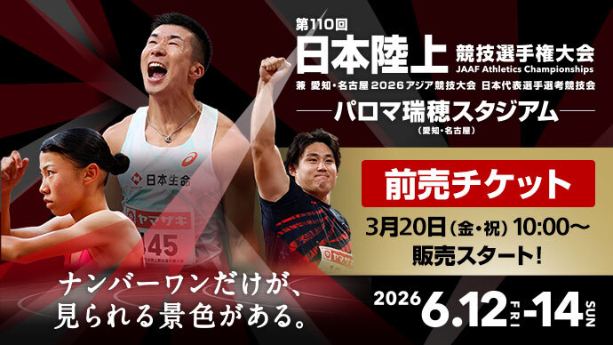 主催 2026/6/12(金)~14(日) 第110回日本陸上競技選手権大会 (愛知・パロマ瑞穂スタジアム)