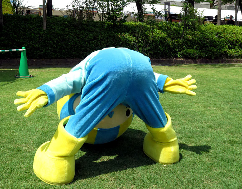 岐阜メモリアルセンター芝生広場北側で開催されている「にぎわい広場イベント」には岐阜のマスコット・ミナモも登場。ポーズをお願いすると、ご覧の通りおちゃめなポーズを披露!
