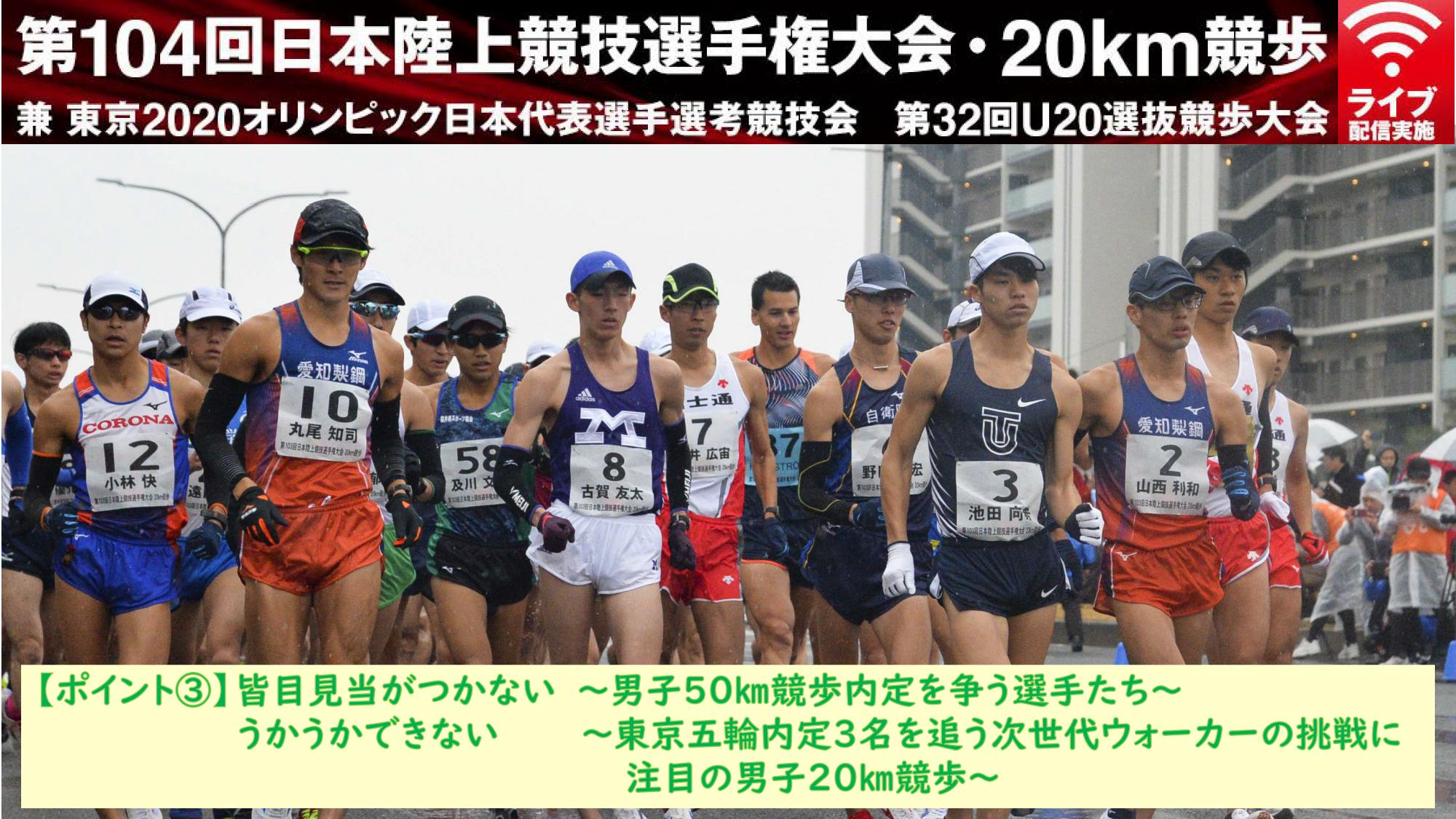 皆目見当がつかない~男子50km競歩内定を争う選手たち~/うかうかできない~東京五輪内定3名を追う次世代ウォーカーの挑戦に注目の男子20km競歩~