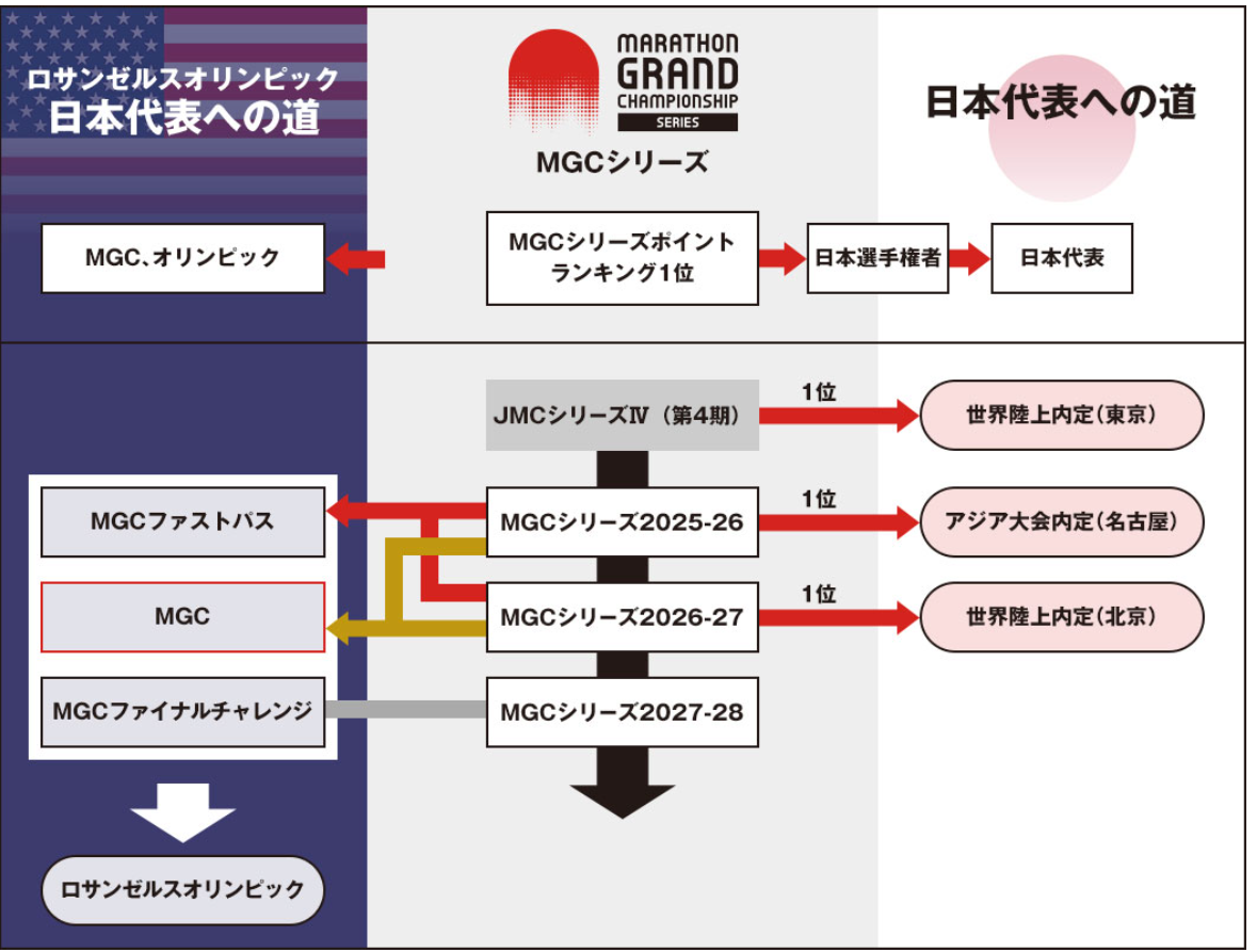 「MGCファストパス」は、ロサンゼルスオリンピック日本代表選考において、メダルを狙える最速の日本代表を輩出するために設ける新たな日本代表選考枠のことです。