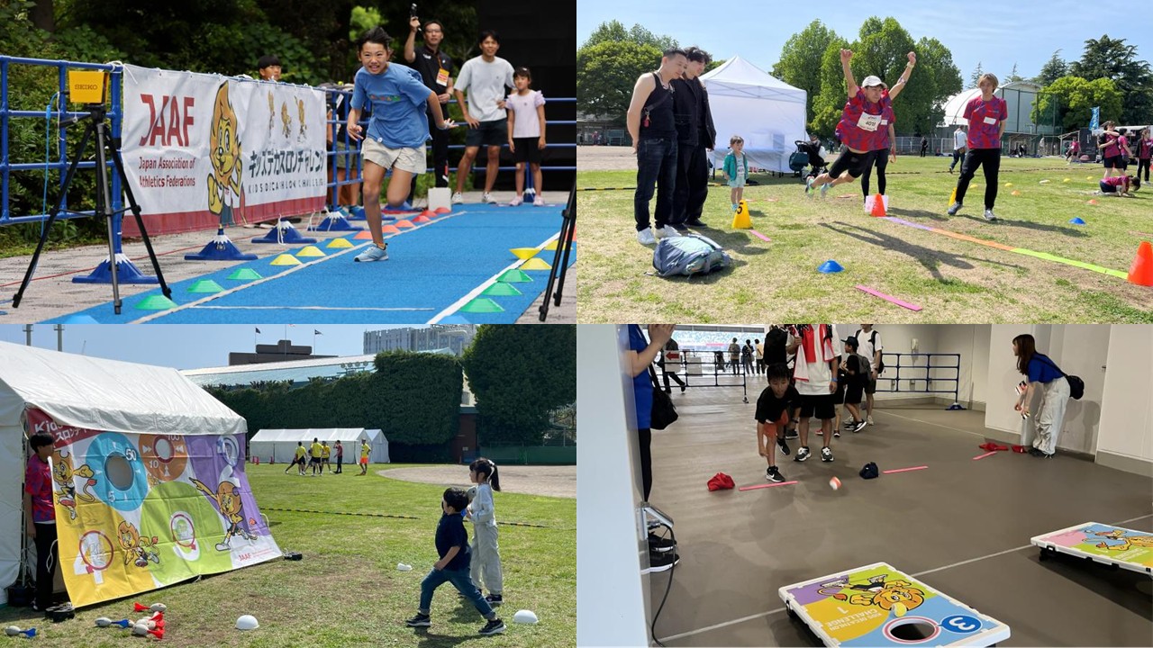 「キング・オブ・アスレティックス」と呼ばれる、陸上10種競技(デカスロン)にちなんだ、多種目の基本運動(走・跳・投)に楽しくチャレンジする、日本陸連のキッズ向けプログラム(通称:デカチャレ)です。主催大会の会場外に設置するイベントブースで誰でも参加できるようにしたり、サブイベントとしてスタジアム内で陸上教室のように実施したりしています。