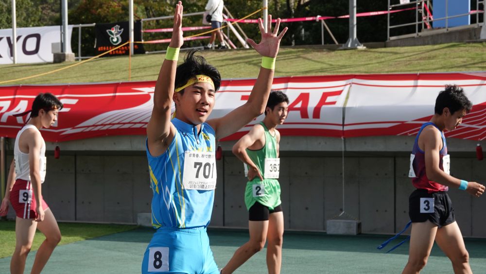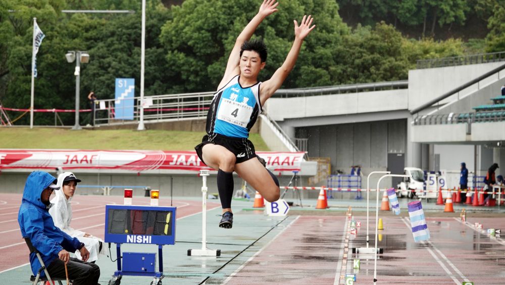 男子走幅跳では、中学2年生の松村春汰(小樽朝里中2北海道)が高校生を含む上級生を抑える殊勲で優勝しました。悪天候のなか、9月に出した7m05に迫る6m96(+0.5)と好ジャンプで初の日本一に輝いています。小川優維(川崎市立橘高1神奈川)が6m93(-0.4)で2位に入りました。三段跳 中川翔太(近大高専1三重)14m89(+2.7)※公14m34(+1.6)