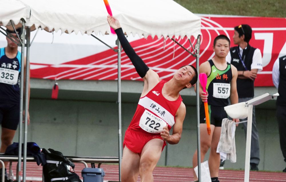 男子円盤投は、大谷勇翔(大塚高1大阪)が前回優勝者の貫禄勝ち。1回目に大会新の49m38を投げて、そのまま逃げ切りました。地元の久保叶多(桜浜中3三重)が45m17で2位。船先勇真(川崎市立橘高1神奈川)が44m01で3位に入りました。ジャベリックスロー(300g)牧野賢介(津山東中3岡山)71m26