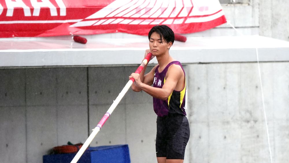 男子走高跳は、前回大会で5位タイの西内尊(中村高1高知)が2m02をただ1人クリアして優勝を果たしました。1m99に1回で成功した山口蒼空(草加新栄中3埼玉)が2位となり、中学2年生の原田裕史(ゼブラン・中2石川)が同じく1m99で3位と健闘しています。棒高跳 大森蒼以(片柳中3埼玉)4m80=大会新
