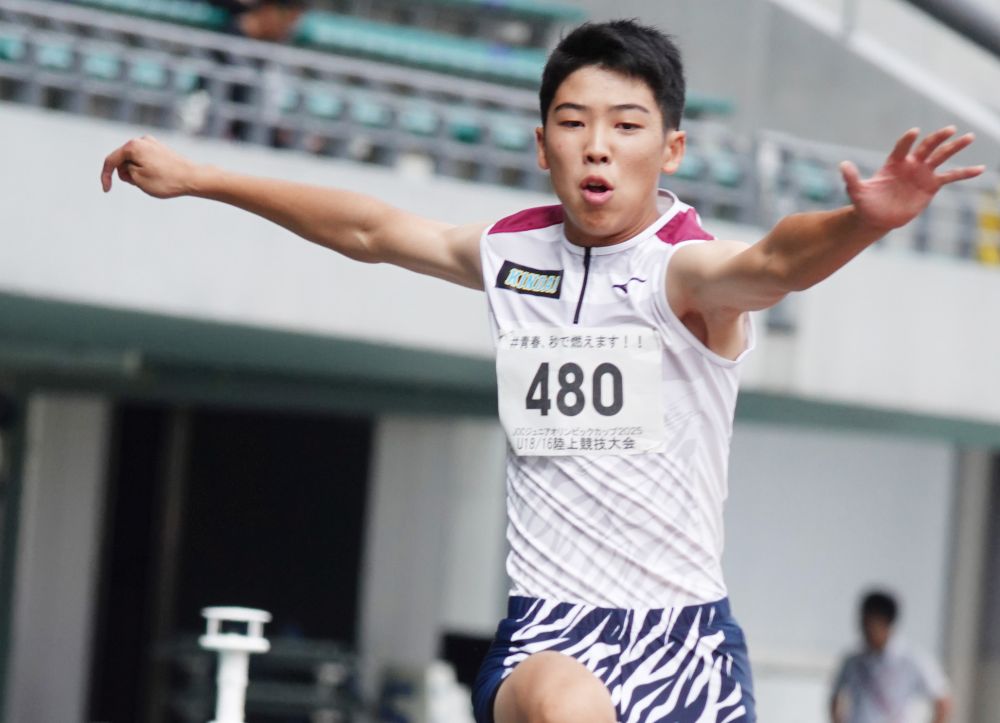 今季の中学陸上界を盛り上げた大森蒼以と飯塚俊介の片柳中(埼玉)のコンビが今大会も躍動。大森が4m80、飯塚が4m75とともに大会記録を塗り替え、沖縄全中に続く1位、2位独占となりました。走幅跳 松村春汰(小樽朝里中2北海道)6m96(+0.5)