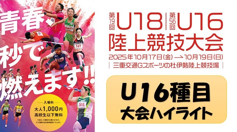 2025年10月17日(金)~19日(日)に「第19回U18陸上競技大会・第56回U16陸上競技大会」を三重交通Gスポーツの杜伊勢陸上競技場にて開催いたしました。