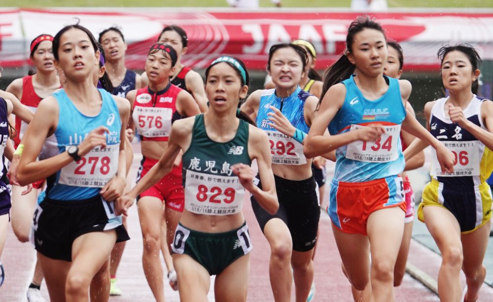女子150mは、ホームストレートで抜けだした山田奈央(御滝中3千葉)が18秒18(-0.3)で優勝。沖縄全中200m7位から大きく躍進しました。フィニッシュ直前に追い上げた村田愛衣紗(ナンバーワンクラブ・中2鹿児島)が18秒31で2位。古田瑞季(開星中3島根)が18秒53で3位と続きました。1000m 中里樹乃(山梨学院高1山梨)2分48秒89