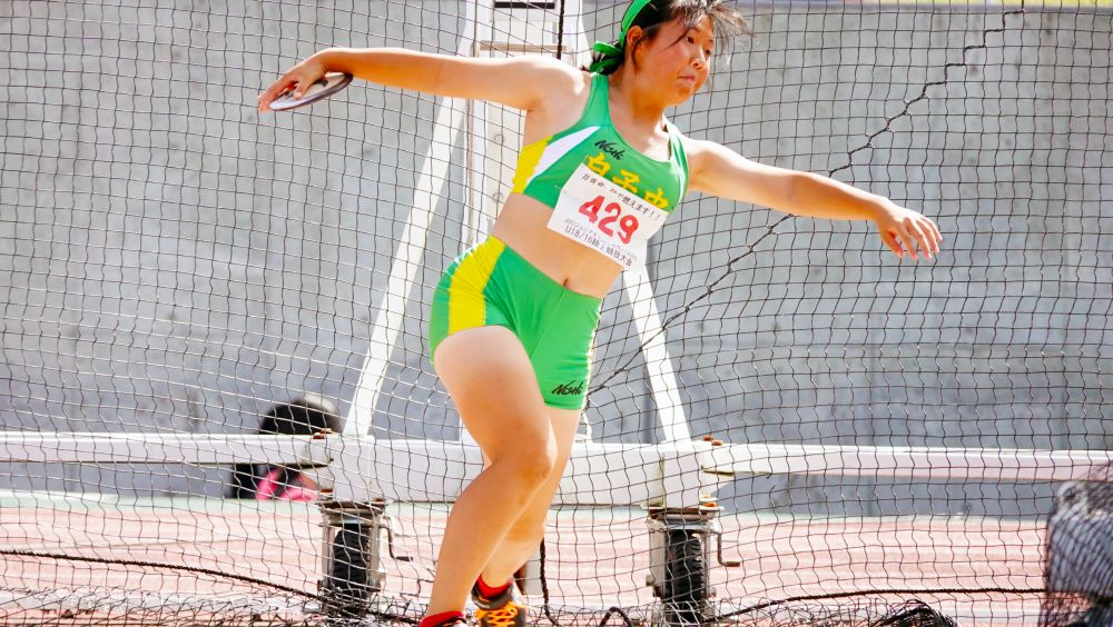 女子円盤投は、藤原茉央(白子中3三重)が優勝を決めた後の最終6投目に41m11をスロー。従来の大会記録(39m83)を1m28も更新する中学歴代4位の投てきで地元優勝を飾りました。38m72の2位に鶴田なずな(中村学園女子高1福岡)が入っています。ジャベリックスロー(300g)向山和果(伊那東部中3長野)50m91