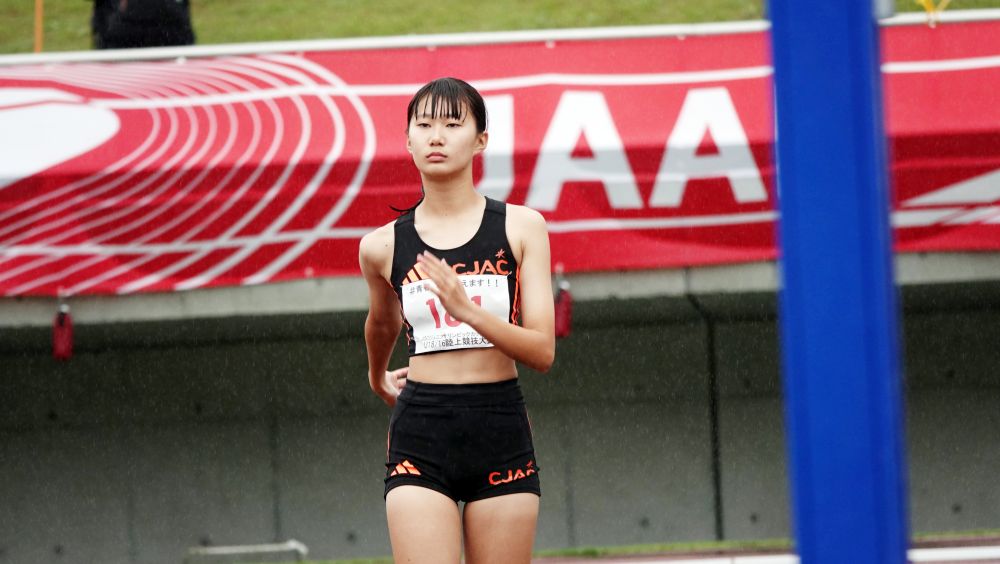 すでに全国大会などで活躍する選手が多く出場した女子100mハードルは、8月の沖縄全中で連覇を達成した今村好花(太宰府東中3福岡)が13秒34(+0.7)で優勝。スタートから圧倒的なスピードでライバルを引き離しました。前回4位の藤田紗季(敦賀高1福井)が13秒62で続き、酒井麻帆(アスリートジャパン・中3岡山)が13秒66で3位でした。走高跳 吉田灯織(CJAC・中3千葉)1m68