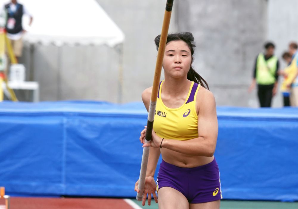 女子走高跳は、沖縄全中チャンピオンの吉田灯織(CJAC・中3千葉)が1m68を2回目に成功して優勝。自己新記録へのチャレンジとなった1m71でも惜しい跳躍を見せました。1m65まで失敗なく跳んだ波紫優奈(盛岡市立高1岩手)が2位となり、1m62の3位には井料百恵(南さつまコミュニティ・中3鹿児島)、京谷桃羽(流山南部中2千葉)、武市七美(横須賀神明中3神奈川)の3人が並びました。棒高跳 松浦清愛(久御山高1京都)3m95