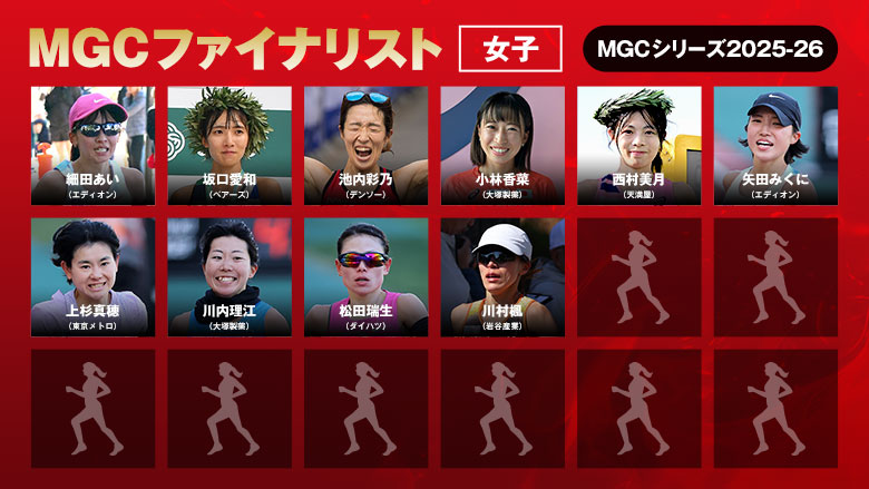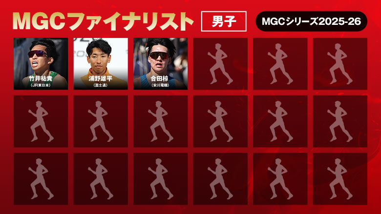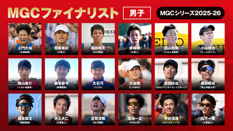 2027年秋開催予定のロサンゼルス2028オリンピック競技大会日本代表選手選考競技会「MGC」の参加資格を獲得した選手の一覧です。※2026年2月26日現在◆MGCとは