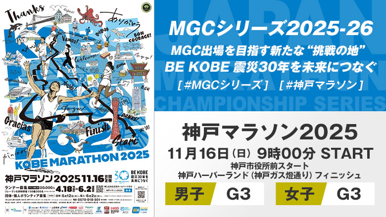 マラソンの年間王者を決める「マラソングランドチャンピオン(MGC)シリーズ2025-26」は、25年3月10日から26年3月まで男子9大会、女子7大会(11月10日現在)が加盟する年間シリーズ。そのシリーズに今年、「神戸マラソン2025」が加わった。
