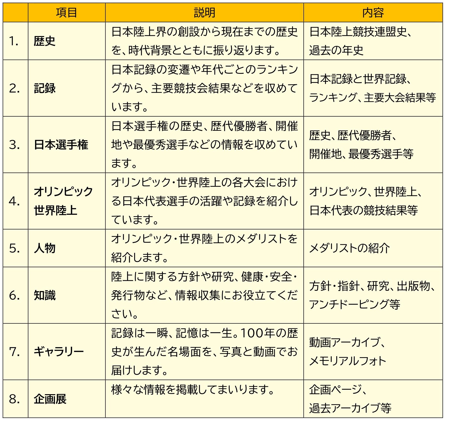 【コンテンツ】陸上に関するあらゆる情報、歴史、記録、知識、写真等を集約