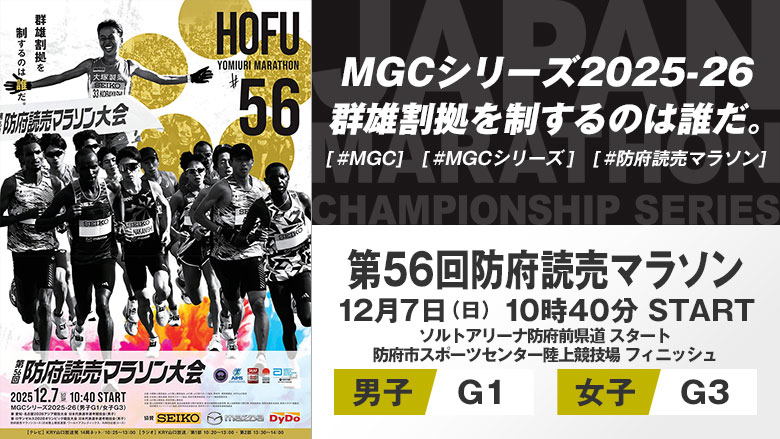 MGCシリーズ2025-26の年間チャンピオン(第109回日本選手権者)は、26年10月に愛知・名古屋で開催されるアジア大会のマラソン日本代表に内定する。