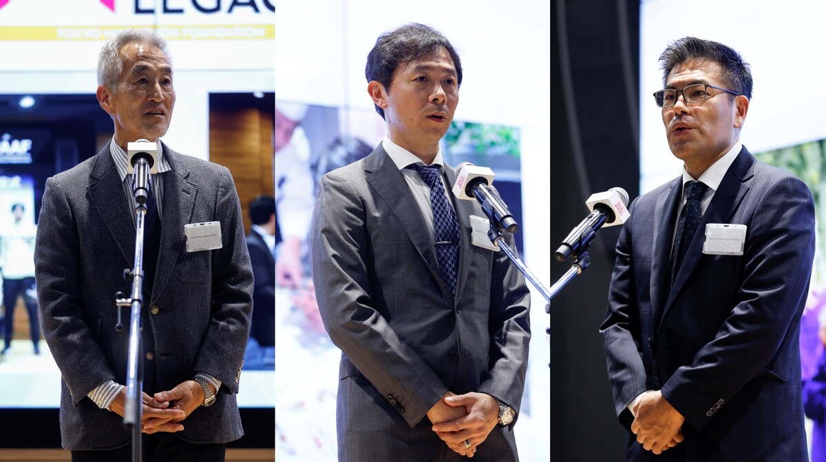 ここでは、室伏マネジャーの呼びかけで、急きょ出席された各社の代表に登壇いただき、挨拶をお願いする場面も。各氏ともに、温かさと優しさ、そして力強さのこもった言葉で、認定・修了アスリートに期待とエールを寄せてくださいました。