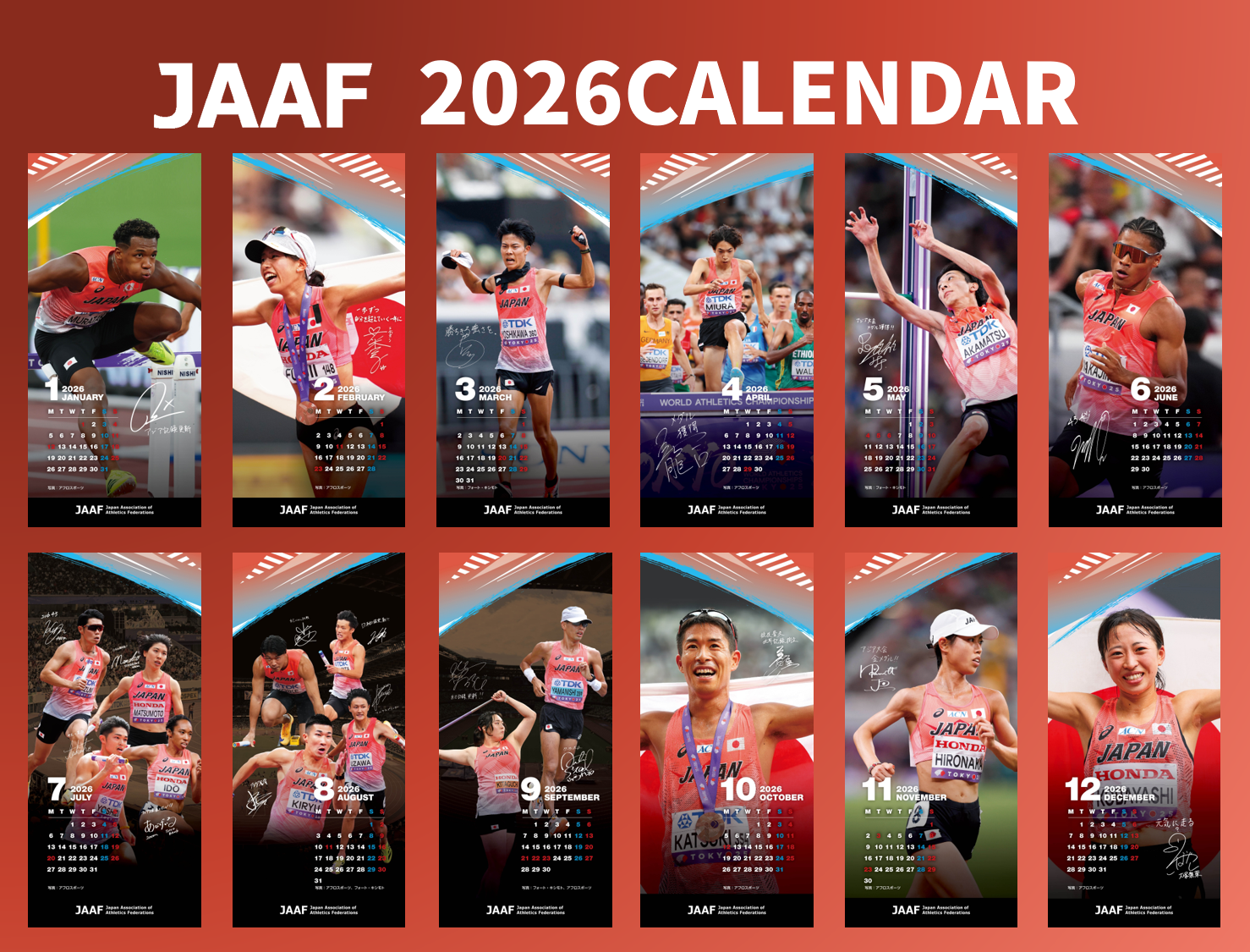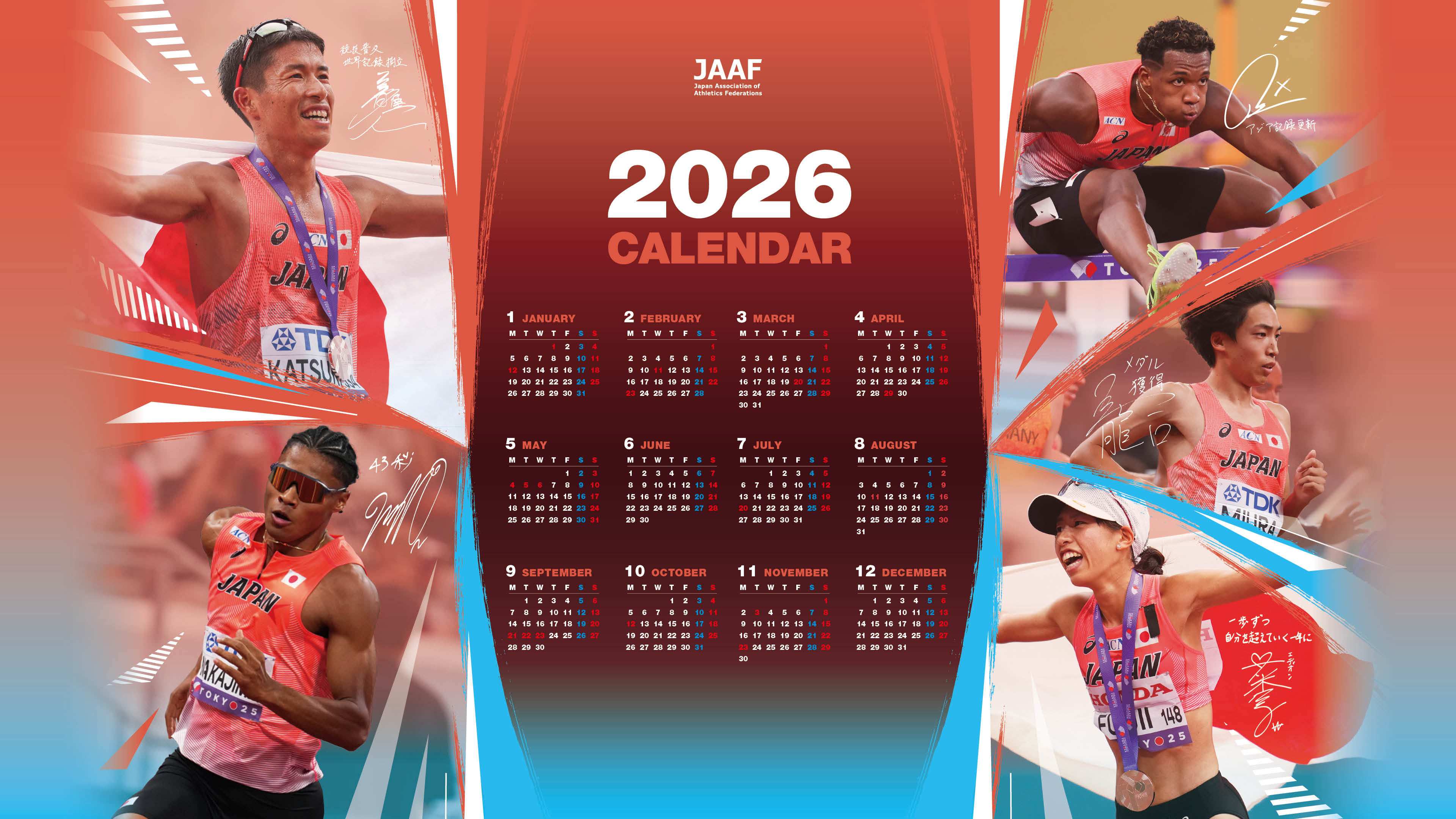 この度日本陸上競技連盟では、2026年1月から2026年12月までご使用いただける「壁紙カレンダー」を作成いたしました!