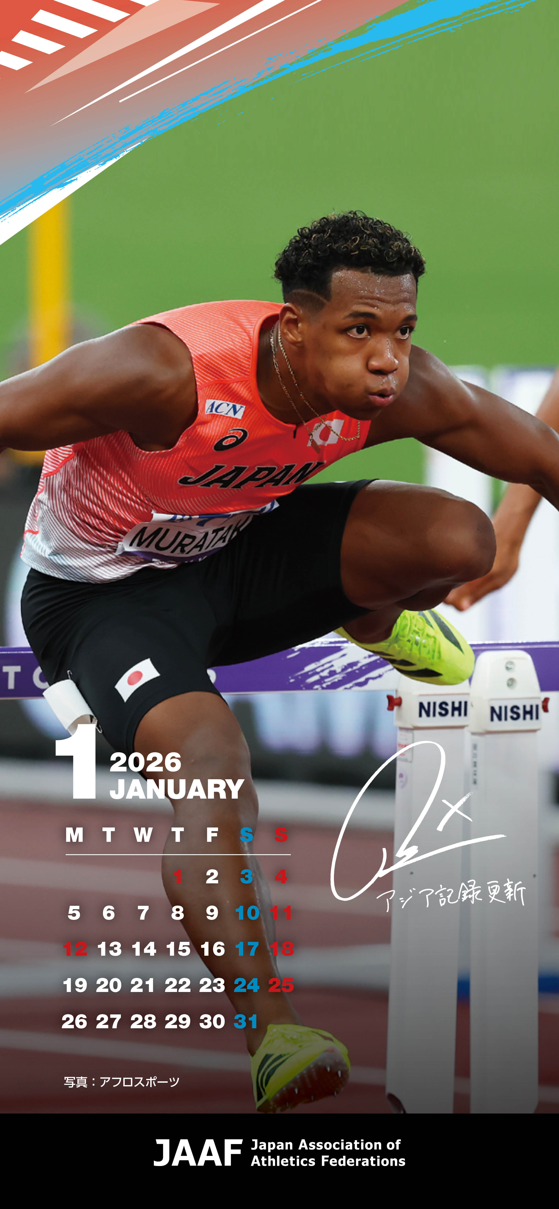 【JAAF2026カレンダー】2025年活躍した選手たちがカレンダーに!1月は東京世界陸上5位&日本記録12秒92を樹立した村竹ラシッド