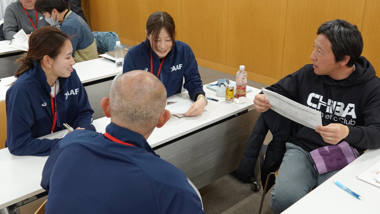 また、この合宿では、指導者の資質向上を期した研修も実施。今回も、U20/U16カテゴリー年代競技者指導の基盤となる競技者育成指針( https://www.jaaf.or.jp/development/model/)に則ったプログラムが用意されました。