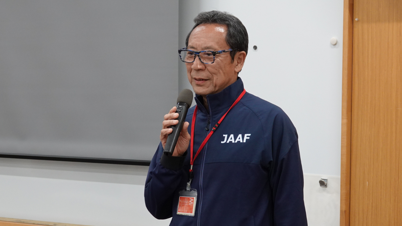 さらに、現在、日本陸連が検討を進めている“目指すべき競技会システムの在り方”について、「国際競争に合った競技運営、競技施設、強化育成の仕組みに整えていく」として、現在、日本で生じている国内競技会の問題点と、これらの解消に向けて目指していこうとしている改善の具体的な方向性なども示しながら、「(システムを変えていくためには)これらも含めて、たくさんのことを考えていく必要があるが、今日はまず、すべて、自分自身のことに置き換えて考えを進めてもらいたい。優秀なタレント(高い能力や資質を持つ選手)を預かっている指導者が、その選手に対して、どうやって未来を語るのか。また、そのあとどう送りだすのかについて、一緒に考えていきたいと思う」と呼びかけました。