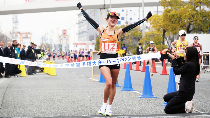 第109回日本選手権・ハーフマラソン競歩が2月15日、名古屋2026アジア競技大会(以下、アジア大会)および、ブラジリア2026世界競歩チーム選手権大会の日本代表選手選考競技会を兼ねて、兵庫県神戸市の六甲アイランド甲南大学西側長距離競歩路で行われました。