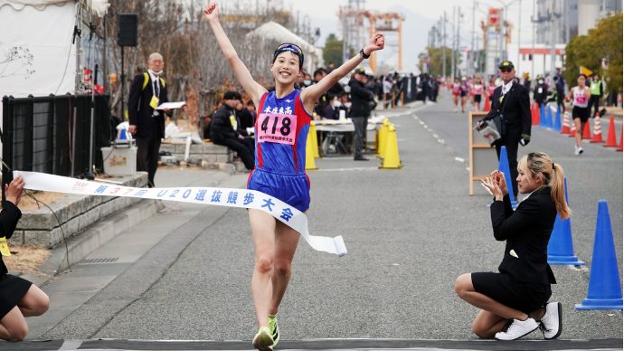 今回は、藤井さん(菜々子、エディオン、東京世界選手権20km競歩銅メダリスト)が出場されていないなかでのレースだったので、“運良く優勝できた”みたいな感じもあるが、藤井さんと同じくらいの力で勝負できるようでないと、世界での入賞というのは全く見えてこないと思っている。来年、藤井さんがいても戦えるように、これからの1年で、また力をつけていきたい。