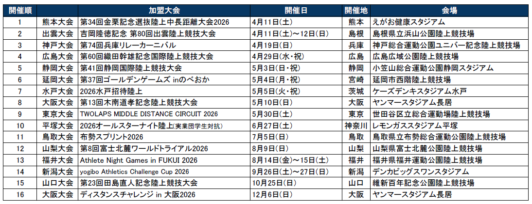2026年は、16大会がシリーズに参画し、トップアスリートたちが自分の限界や記録に挑む姿などをファンの皆さまにお届けしていきます。