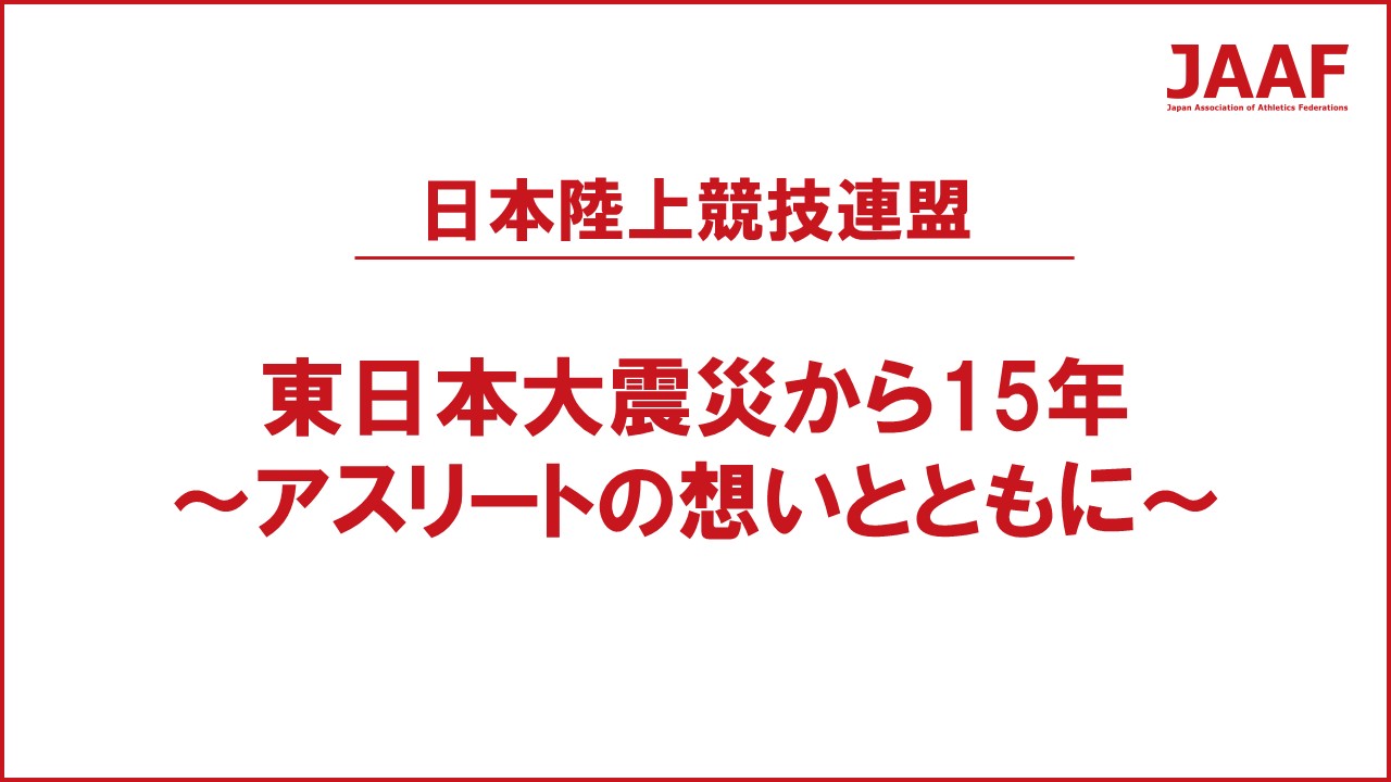 東日本大震災から15年を迎え、犠牲となられた方々に心より哀悼の意を表します。東北の復興の歩みを目の当たりにし、スポーツが人の心を支え、前を向く力となってきたことを実感しました。震災の記憶と教訓を次の世代へ伝え、日頃から災害への備えを続けていくことが、今を生きる私たち一人ひとりに求められている役割だと考えています。