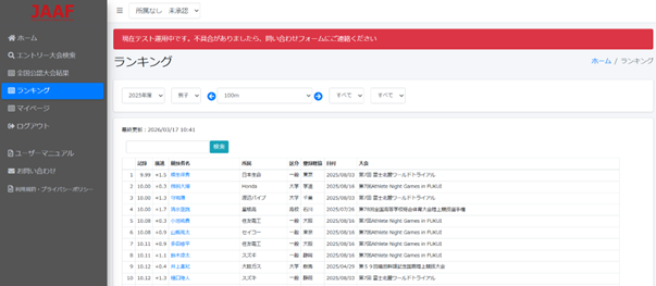 今季ランキングを一挙公開!!最新の記録ランキングを無料で公開し、JAAF IDで、誰でも楽しめるサービス~Athletic Family 日本陸上競技連盟会員ページに、新機能『記録ランキング』が登場~