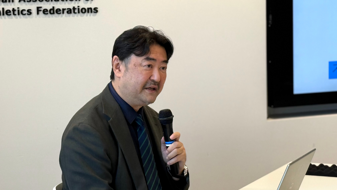 午前中に組まれた第2回研修は、アスリートにかかわる法的問題のスペシャリストである早川吉尚先生を講師に迎えて、「リーガル研修」が行われました。立教大学教授として学生に法律を教えている早川先生は、弁護士としても活躍。また、国内でアンチ・ドーピング規則違反が疑われる事例が生じたときに、中立的な立場で聴聞や裁定を行う専門家委員会「日本アンチ・ドーピング規律パネル」の委員長を務めるほか、スポーツに関連するトラブルを仲裁する国際的な機関「スポーツ仲裁裁判所(CAS)」で裁判官のような役割を果たす仲裁人として活動するなど、スポーツ仲裁の場で豊富な経験と数多くの実績を持つことで知られる人物です。