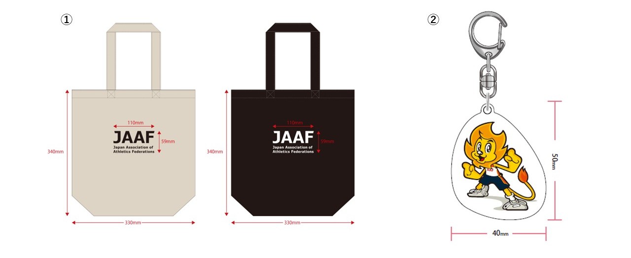 ①JAAFロゴ入りトートバッグ(白・黒) – 各1,500円(税込)