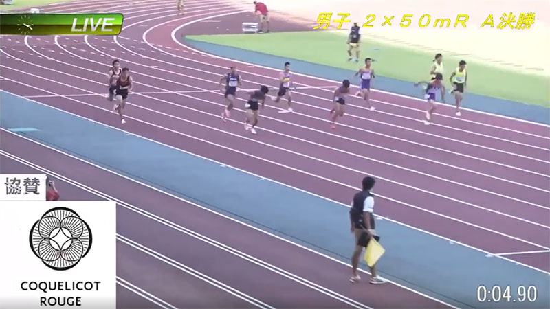 ――なるほど。今日、お聞きするイベントや教室が、まずは、そうした三重陸協としての認識が明確にあるうえでのことなのだとわかりました。ここからは1つずつお聞かせください。まずは、コクリコルージュカップのお話を。要項等を拝見すると、「ザ・エキシビジョンリレーマッチ 〜最速のバトンパス王決定戦〜」という記載がありますが、リレーの競技会ですか? それともイベント? 2×50mリレーという種目で実施しているのですか? 「コクリコルージュカップ」と命名されていますが、何か由来や経緯があるのですか?
